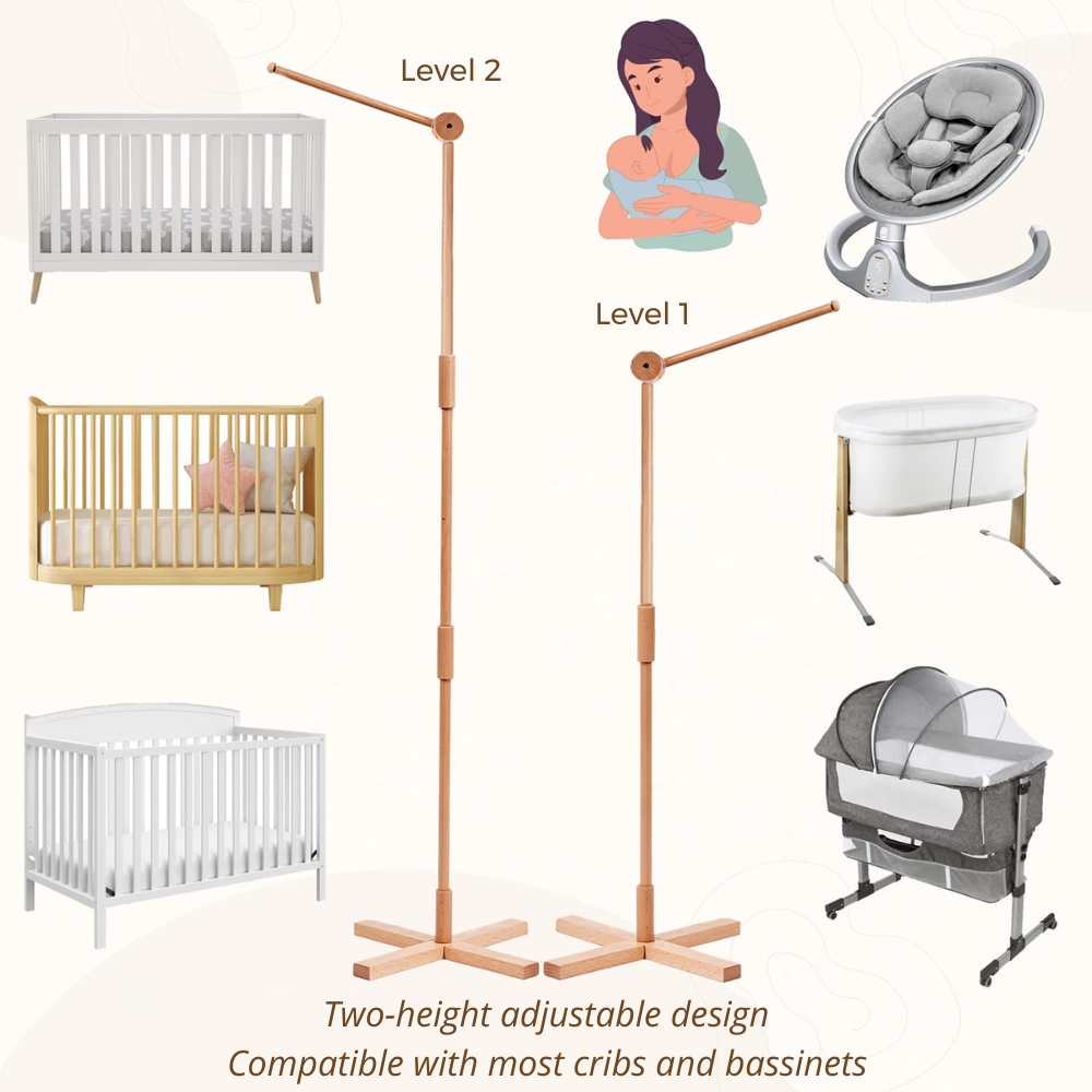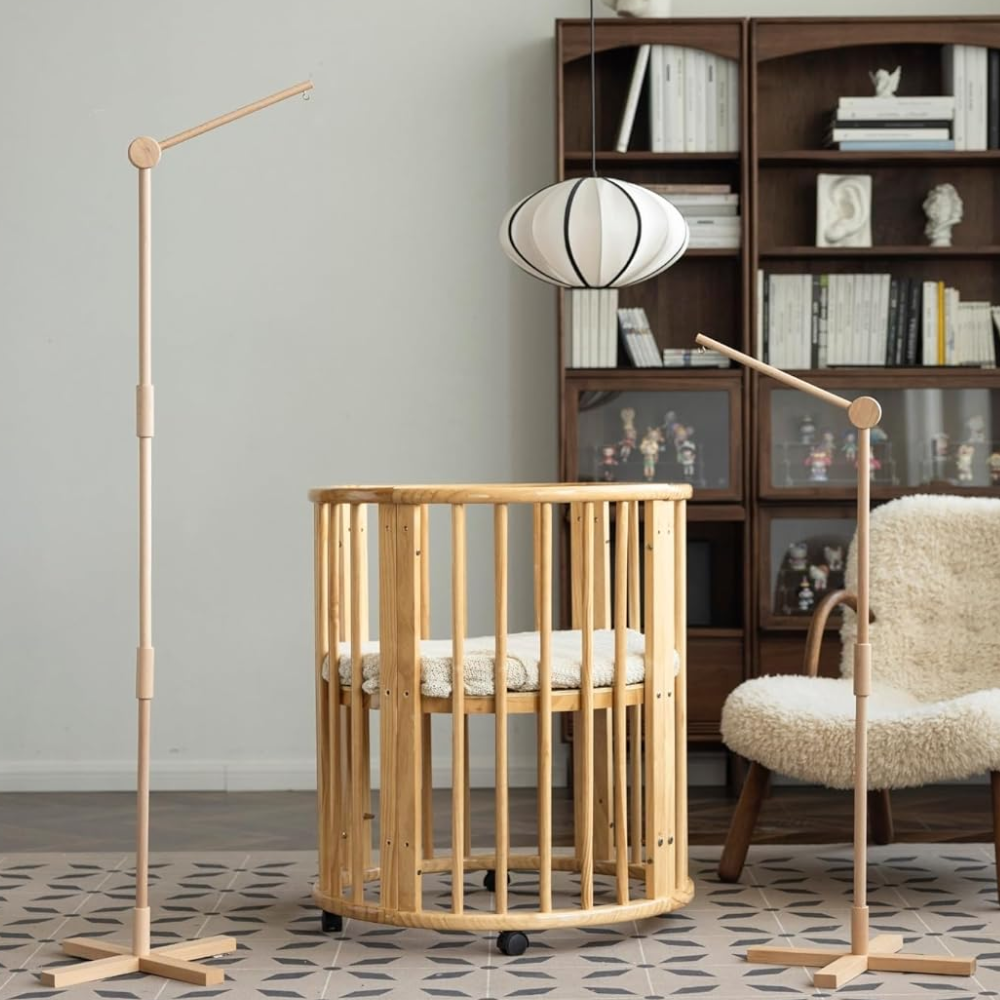 Solid mount made from beech wood. Bring a calming, organic vibe to your baby’s world with our eco‑friendly beech wood floor standing holder arm.